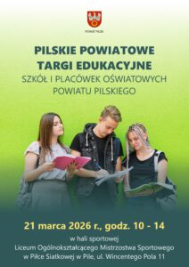 Zapraszamy na Pilskie Powiatowe Targi Edukacyjne 21 marca 2026 godz. 10.00-14.00 hala sportowa LOMS ul. Wincentego Pola 11 Piła