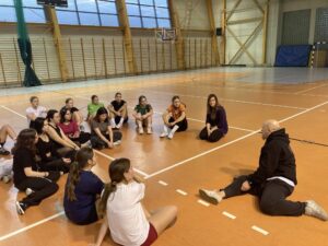 02.12.25 w naszej szkole LOMS na zajęciach wychowania fizycznego gościł znany w Pile człowiek, który roztańczył nasze miasto w „Rytmach Ulicy”, popularny wśród tańczącej młodzieży,