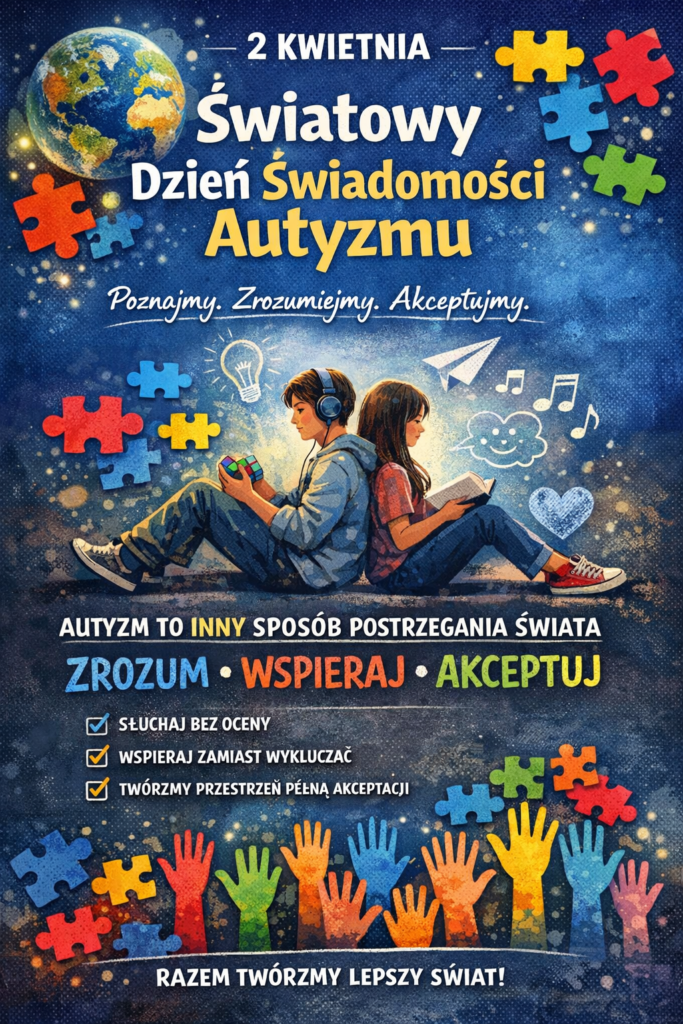 Światowy Dzień Świadomości Autyzmu obchodzony jest co roku 2 kwietnia. Został ustanowiony przez Organizację Narodów Zjednoczonych, aby zwiększać wiedzę społeczeństwa na temat autyzmu oraz promować akceptację osób w spektrum. Celem tego dnia jest: Autyzm to zaburzenie neurorozwojowe, które wpływa m.in. na sposób komunikacji, relacje społeczne oraz zachowanie. Każda osoba w spektrum jest inna i ma swoje indywidualne potrzeby […]