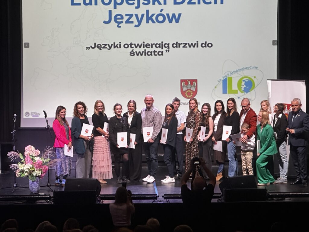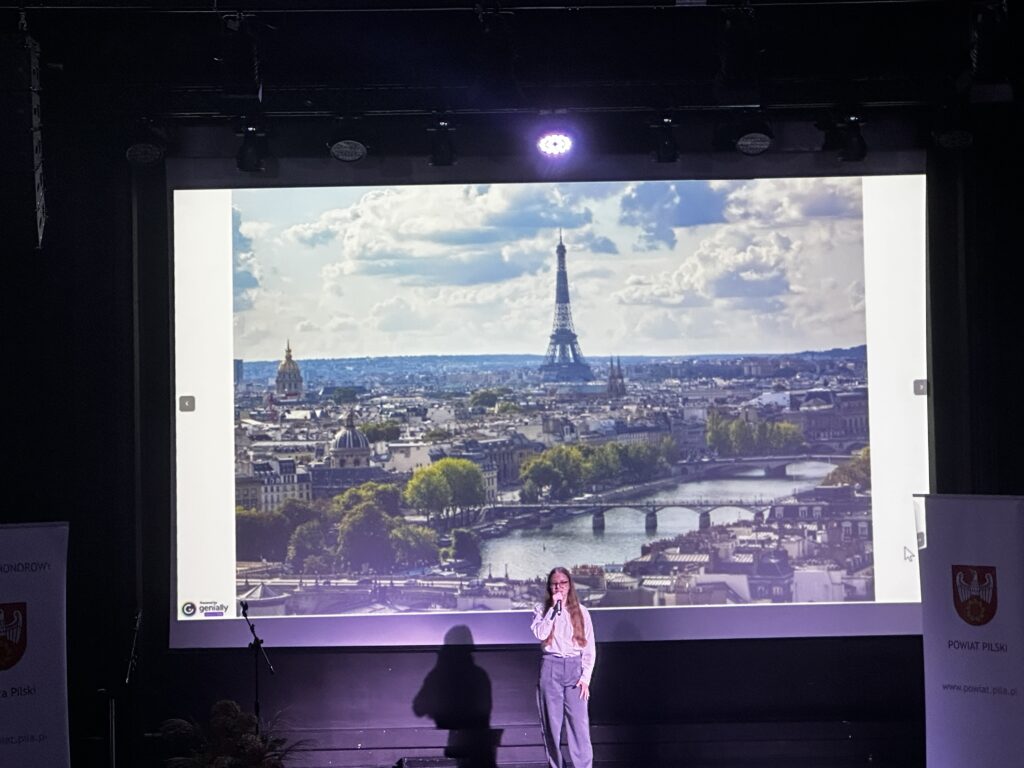 26.09.25r odbyła się uroczysta Gala wręczenia nagród w Powiatowym Konkursie z okazji Europejskiego Dnia Języków pod patronatem Starosty Pilskiego, Rafała Zdziereli. Organizatorem konkursu było I Liceum Ogólnokształcące im. Marii Skłodowskiej-Curie w Pile. Konkurs skierowany był do szkół ponadpodstawowych powiatu polskiego. Polegał na przetłumaczeniu hasła konkursu „Języki otwierają drzwi do świata” na wylosowany używany w Unii Europejskiej język oraz zrobienie zdjęcia przedstawiające hasło konkursowe oraz kulturę wylosowanego kraju. Naszą szkoła wylosowała język francuski. Oto zdjęcie konkursowe oraz fotorelacja z Gali.