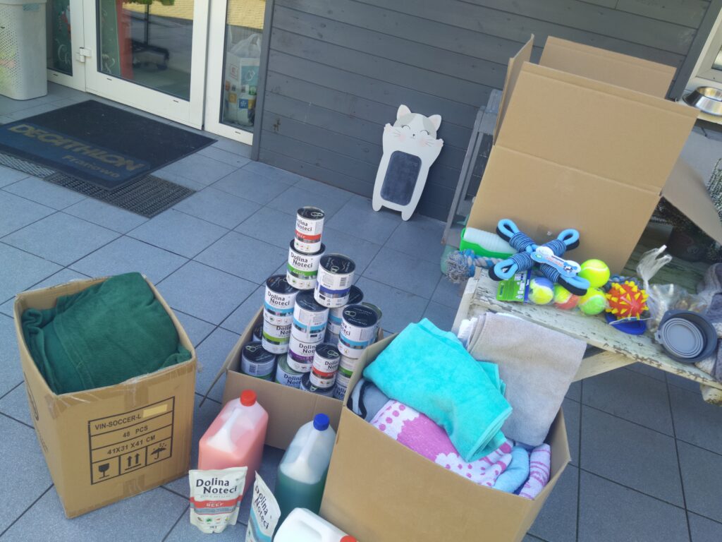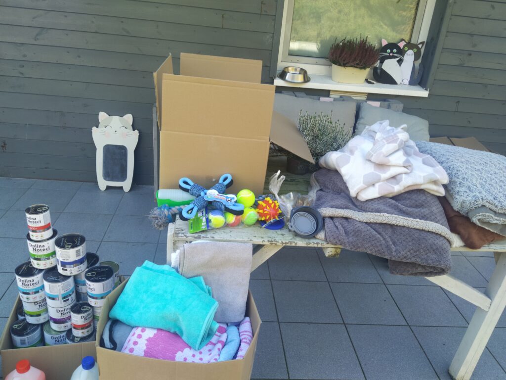 ręczniki, zabawki, a za zebrane pieniążki zakupiono puszki z jedzeniem.