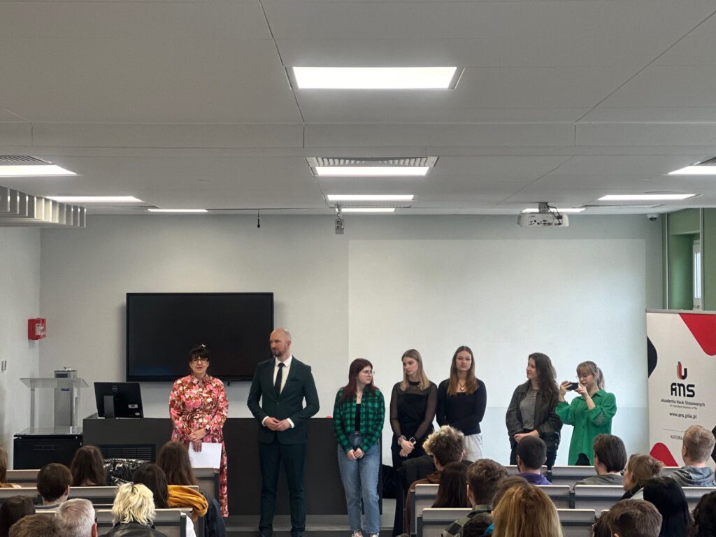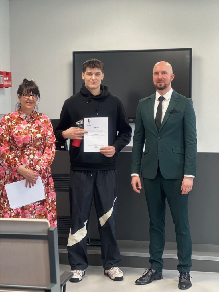 Uczniowie klasy 2A, Natalia Peksa, Nikodem Chrostek, Filip Pokora oraz Marcel Marczyk 13 marca wzięli udział w Konkursie „Tłumaczenia: pół żartem, pół serio” zorganizowanym przez Akademię Nauk Stosowanych im. Stanisława Staszica w Pile. Zadania konkursowe były dla uczniów sporym wyzwaniem jednocześnie sprawiając im sporo radości. Wysyłek włożony w zadania konkursowe został nagrodzony wyróżnieniem dla Marcela Marczyka. Serdecznie gratulujemy i jesteśmy dumni ze wszystkich uczestników.