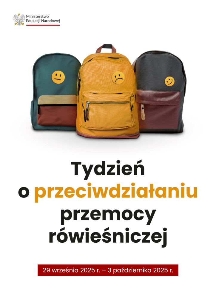 W dniach 29 września – 3 października 2025 r. odbywa się ogólnopolska inicjatywa Ministerstwa Edukacji Narodowej. W szkołach i placówkach oświatowych odbywa się – „Tydzień o Przeciwdziałaniu Przemocy Rówieśniczej”. To czas, aby wspólnie pokazać, jak ważne jest tworzenie bezpiecznych miejsc nauki i budowanie relacji opartych na szacunku.