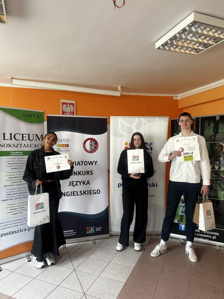 23.04 po przeprowadzeniu eliminacji szkolnych Patrycja Kamba-Kimbatshi z klasy 1A, Franciszek Sadłowski z 1 B oraz Anna Rochnowska z 2 A SK wzięli udział w XII Powiatowym Konkursie Języka Angielskiego. Franek przeszedł do II etapu konkursu wraz z 5 uczestnikami. Jego przemówienie porwało członków jury, było zdecydowanie najlepsze pośród wszystkich uczestników. Po zsumowaniu punktów z części pisemnej oraz ustnej Franek zajął II miejsce. Był to jego dubiut konkursie. Gratujemy zwycięstwa w naprawdę